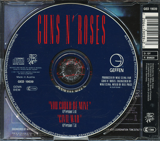 (If you see no auction listings above, clicking the Search button will search eBay Stores listings for the CD single in question.) Return to Main CD Singles List Guns 'n RosesYou Could Be Mine