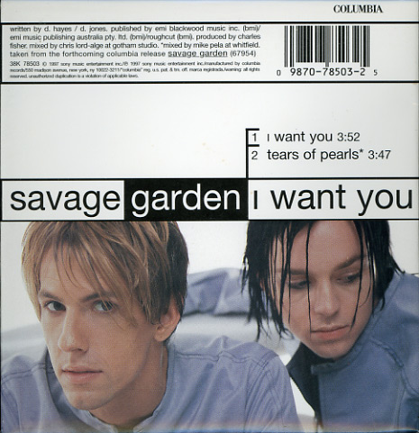(If you see no auction listings above, clicking the Search button will search eBay Stores listings for the CD single in question.) Return to Main CD Singles List Savage GardenI Want You (2-track)