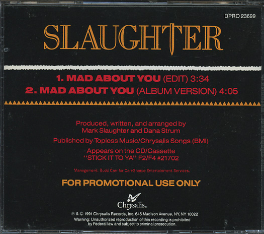 (If you see no auction listings above, clicking the Search button will search eBay Stores listings for the CD single in question.) Return to Main CD Singles List SlaughterMad About You