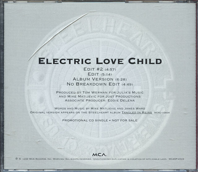 (If you see no auction listings above, clicking the Search button will search eBay Stores listings for the CD single in question.) Return to Main CD Singles List SteelheartElectric Love Child