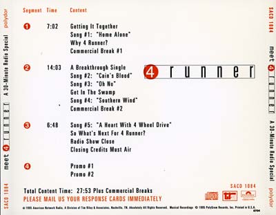 | 3. | Song #5: A Heart With 4 Wheel Drive/So What's Next for 4 Runner?/Radio Show Close/Closing Credits Must Air | 6:48 |