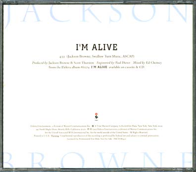 (If you see no auction listings above, clicking the Search button will search eBay Stores listings for the CD single in question.) Return to Main CD Singles List Jackson BrowneI'm Alive