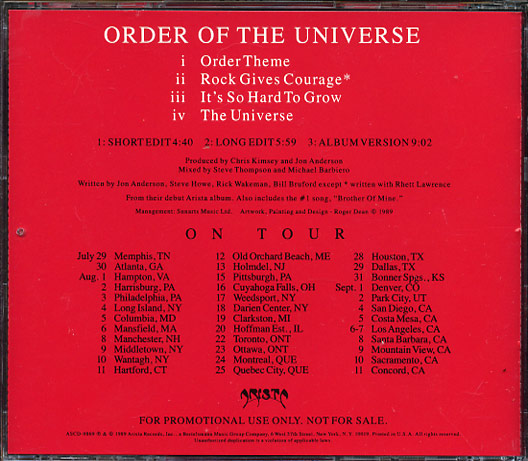 (If you see no auction listings above, clicking the Search button will search eBay Stores listings for the CD single in question.) Return to Main CD Singles List Bruford, Wakeman, Howe AndersonOrder of the Universe